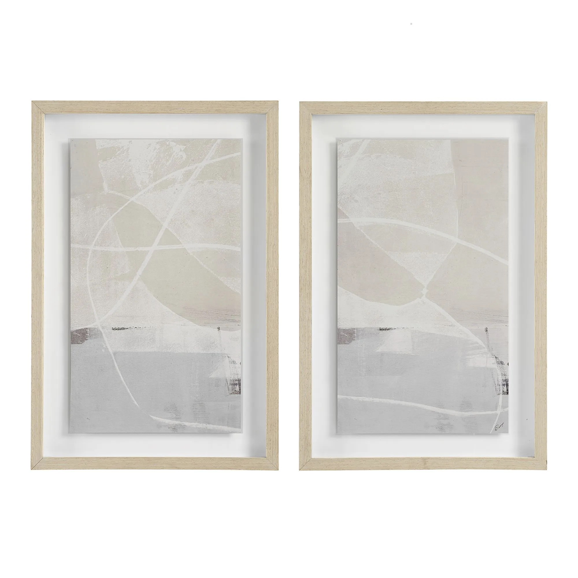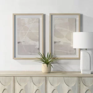The Rovereto set of two framed printed art is the perfect choice to add impact to your space. Each frame measures a generous 20” x 30” making them a great pairing as a big and bold impact over a dining room buffet, behind a living room couch, above a bed, or anywhere else your imagination takes you. Printed in neutral tones on rag paper and enclosed behind glass with a floating mount this wall art delivers an artisanal effect in any interior. Framed in rustic yet modern cream-finished wood, this set is ready to hang thanks to its convenient 2-way D-ring hanging system.